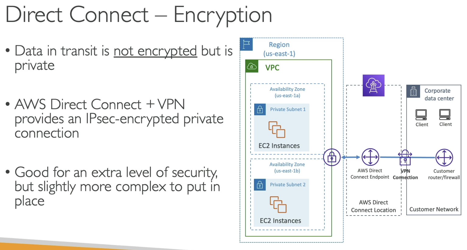 VPN Direct Connect는 기본적으로 private이긴 하지만 encryption이 안된다.