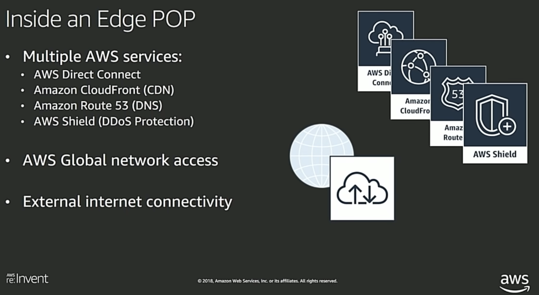 Edge POP으로 customer에게 더 근접해서 연결할 수 있으니까, AWS의 글로벌 인프라를 확장해서 AWS 인프라 - 인터넷 이 경계에 위치한다는 소리같음.