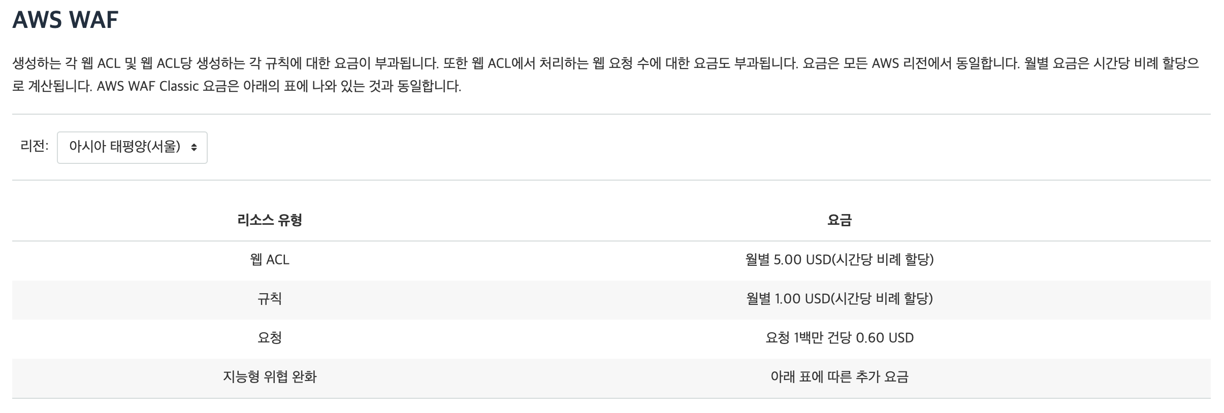 -> 생성한 규칙 그룹 내의 규칙에 대한 요금이 부과됩니다. 또한 웹 ACL에 추가하는 각 규칙 그룹 또는 각 관리형 규칙 그룹에 대해 월별 1.00 USD의 요금(시간당 비례 할당)이 청구됩니다.