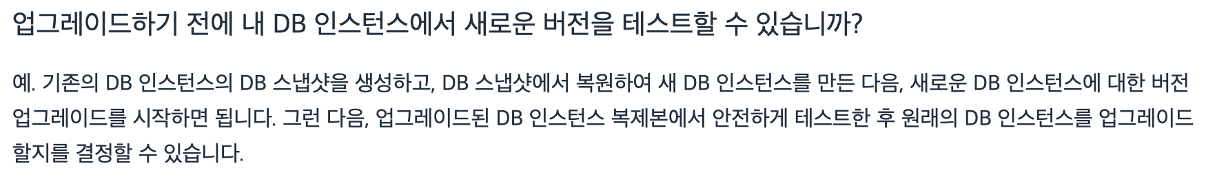 하드웨어, 운영체제, 데이터베이스 엔진 버전 업데이트 - 유지 관리 기간은 수 개월에 한번 정도.