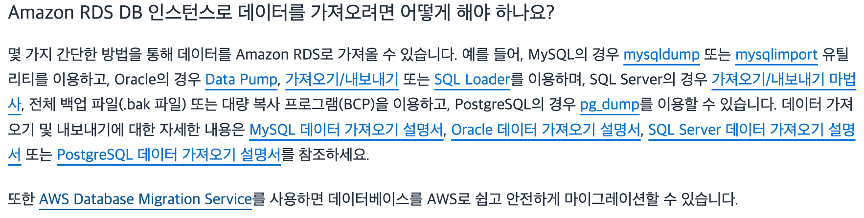MySQL, MariaDB, PostgreSQL, Oracle, Microsoft SQL Server, Amazon Aurora 데이터베이스 엔진을 지원