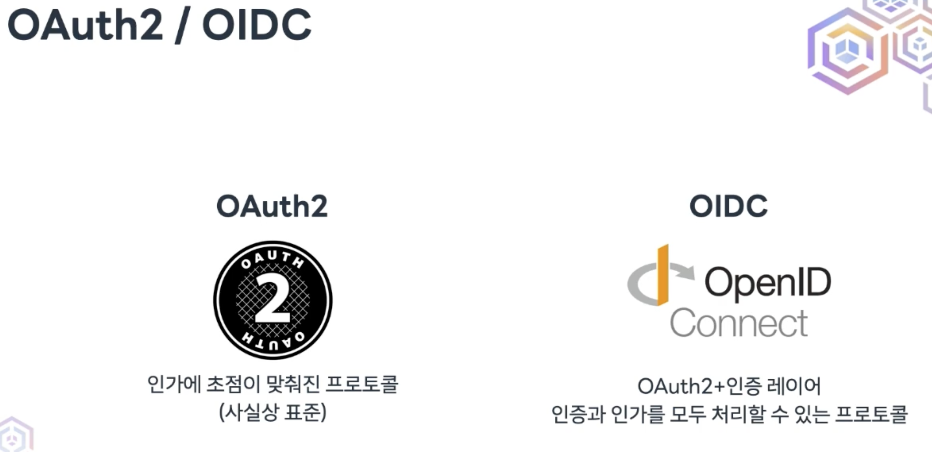 OIDC : OAuth2기반으로 인증 레이어를 붙여서 인증+인가 같이 처리