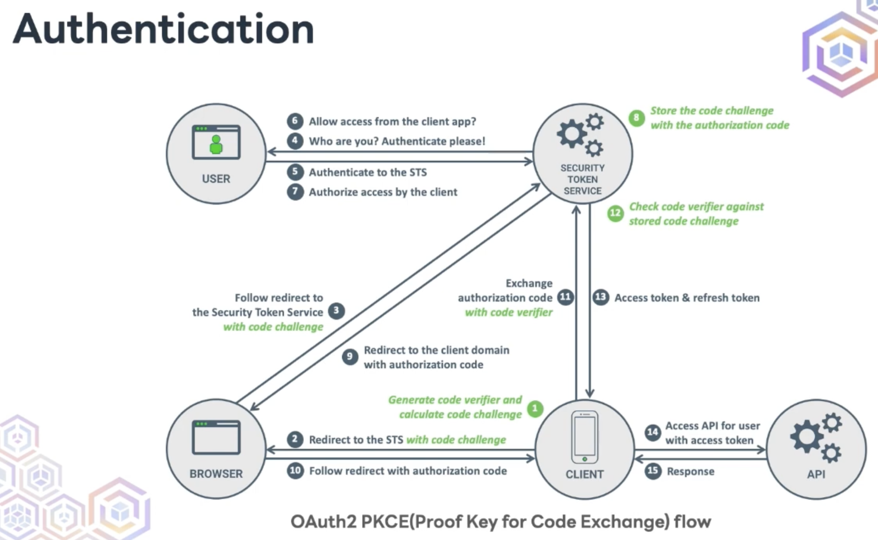 1. 브라우저에서 code vefirifer라는 랜덤 스트링 만들어서 hashing해서 code challenge라는 해싱된 문자열 만들어냄.