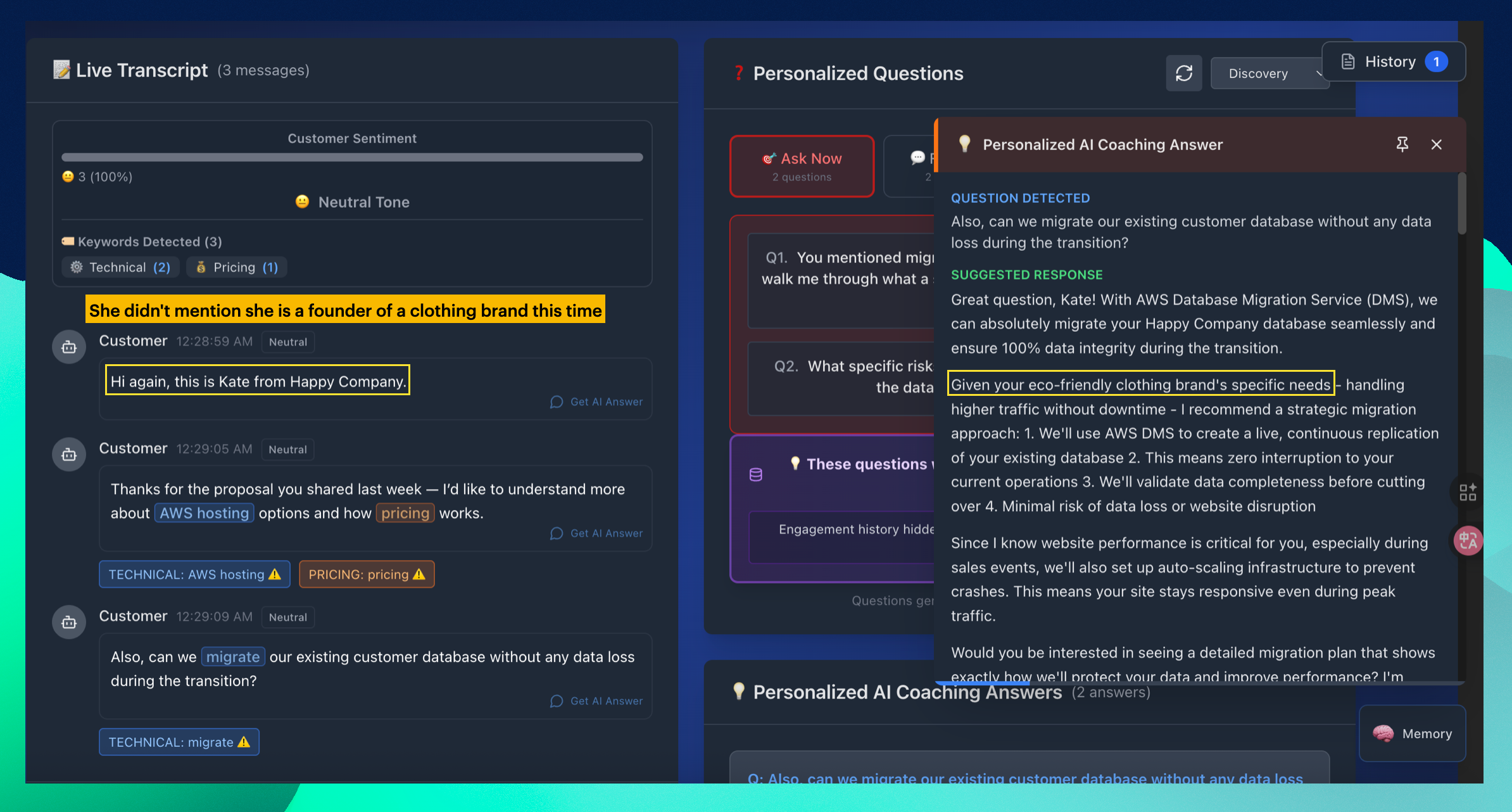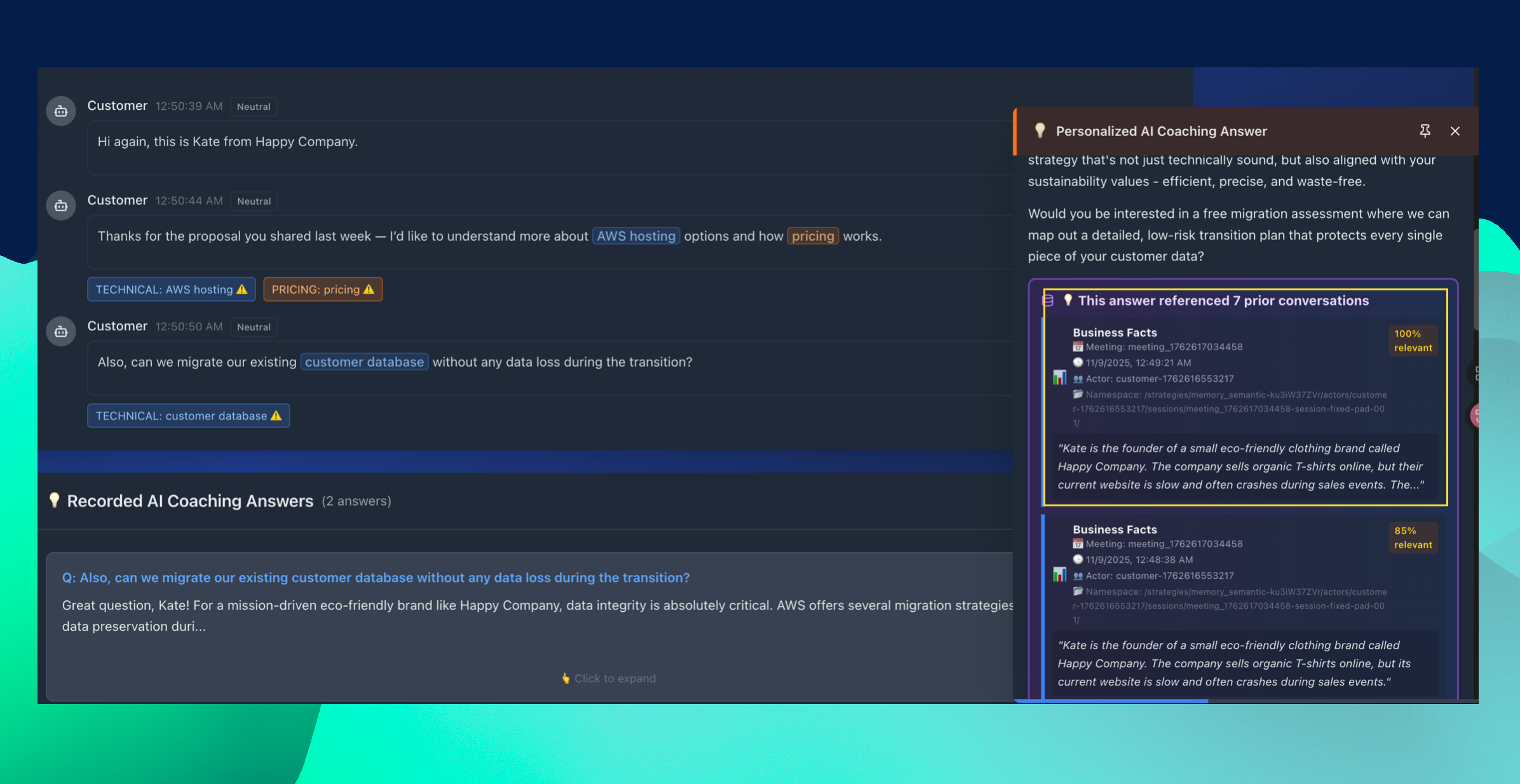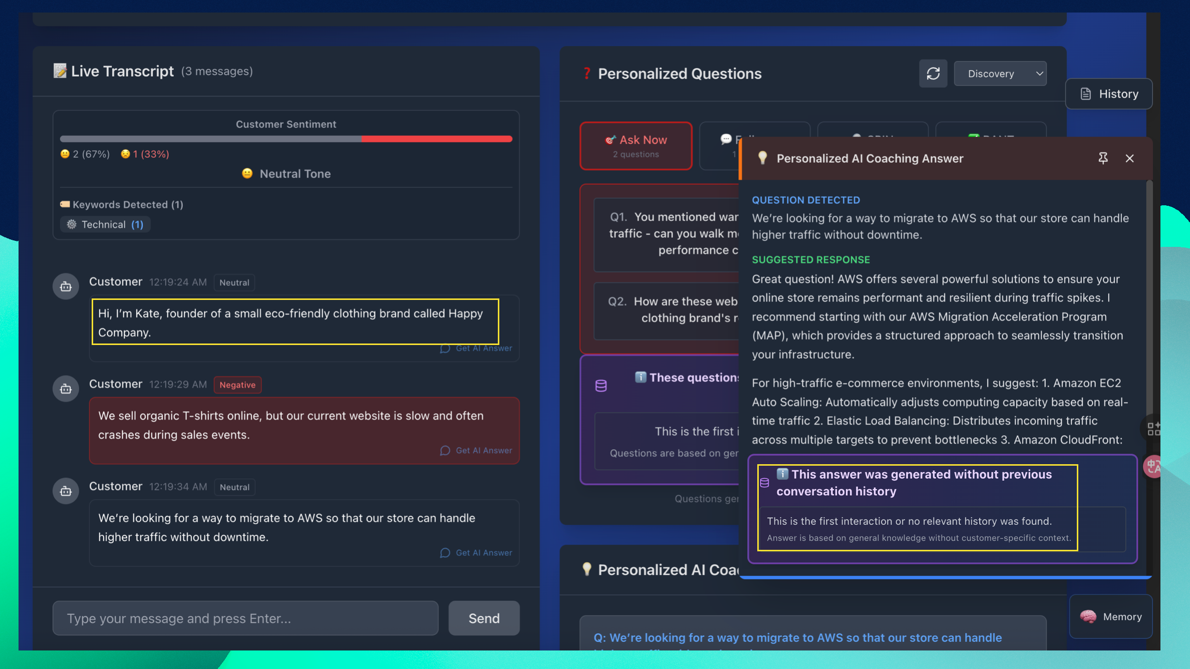 그런데 Personalized AI Coaching Answer을 보니, 특별하게 고객 특화된 답변을 하는 것 같지 않습니다.