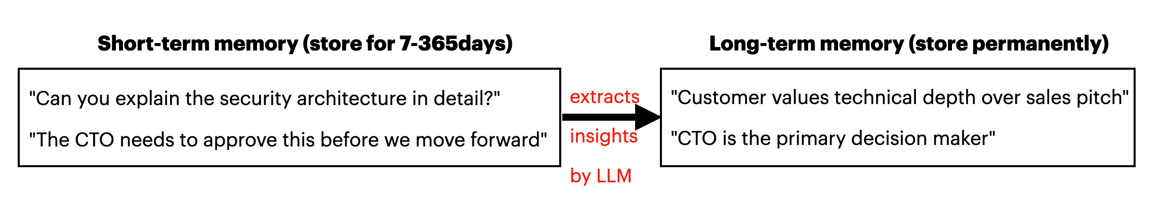 아, 이제 알겠습니다. 미팅 대화(transcript)를 Short-term Memory에 저장하게 되면, AgentCore의 LLM이 고객 인사이트를 추출하고, 기존 Long-term Memory와 비교해 중복을 제거하거나 업데이트한 후 저장하는 구조군요.