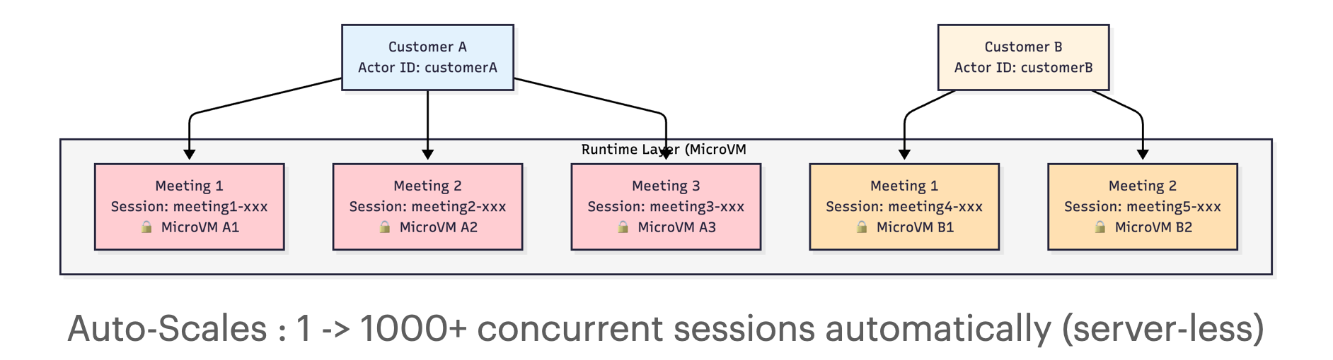 Runtime은 각 세션(미팅)을 물리적으로 완전히 격리하고, Memory는 Actor ID(고객) 아래 여러 세션(미팅)을 계층적으로 조직화해서 컨텍스트를 일관되게 유지하는군요.
