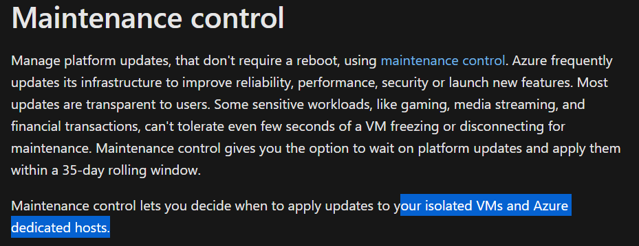 가상 머신을 제공하는 인프라의 안정성과 보안, 성능을 향상시키기 위해 MS가 수행하는 정기적인 업데이트와 보안 패치 작업을 말한다. (당연히 하이퍼바이저의 업데이트/패치를 말하겠지.)